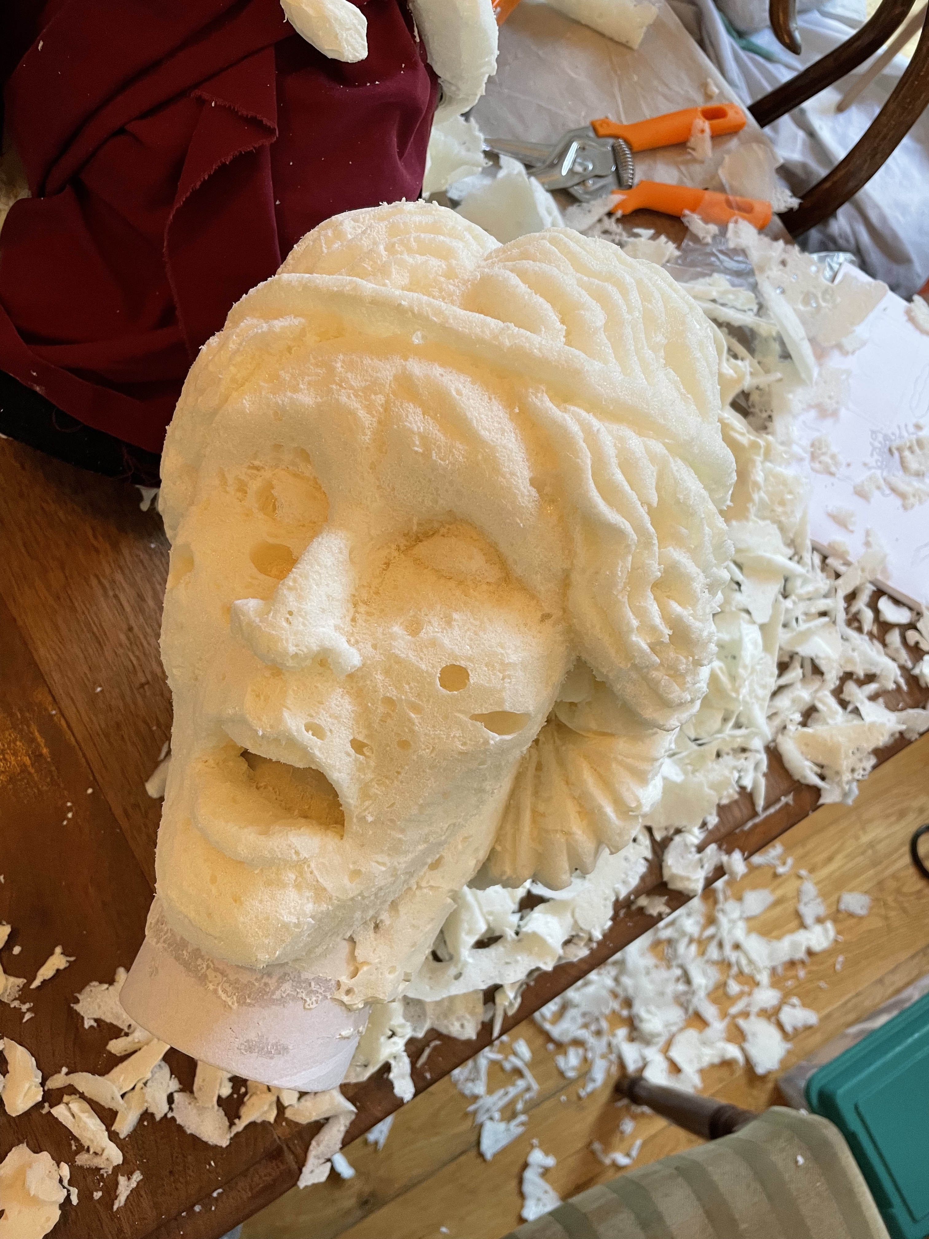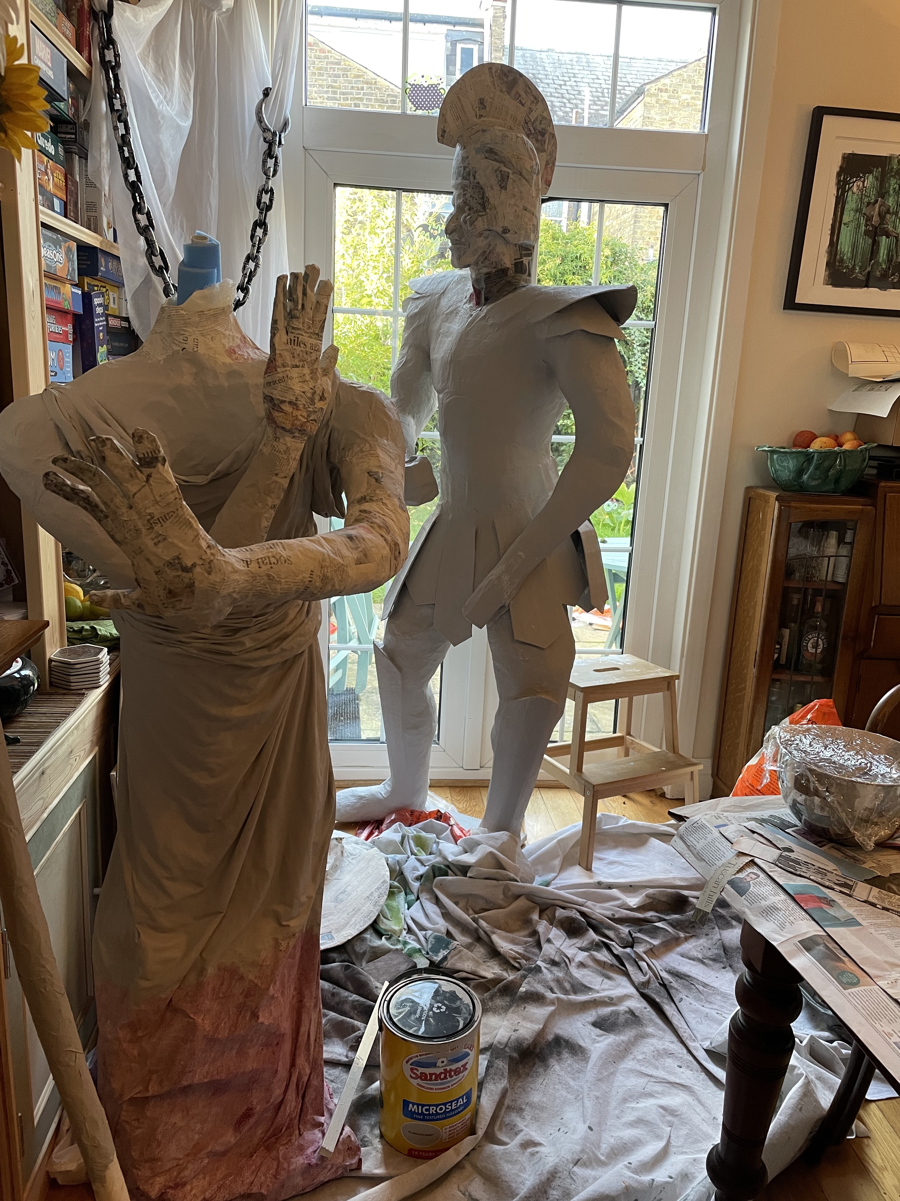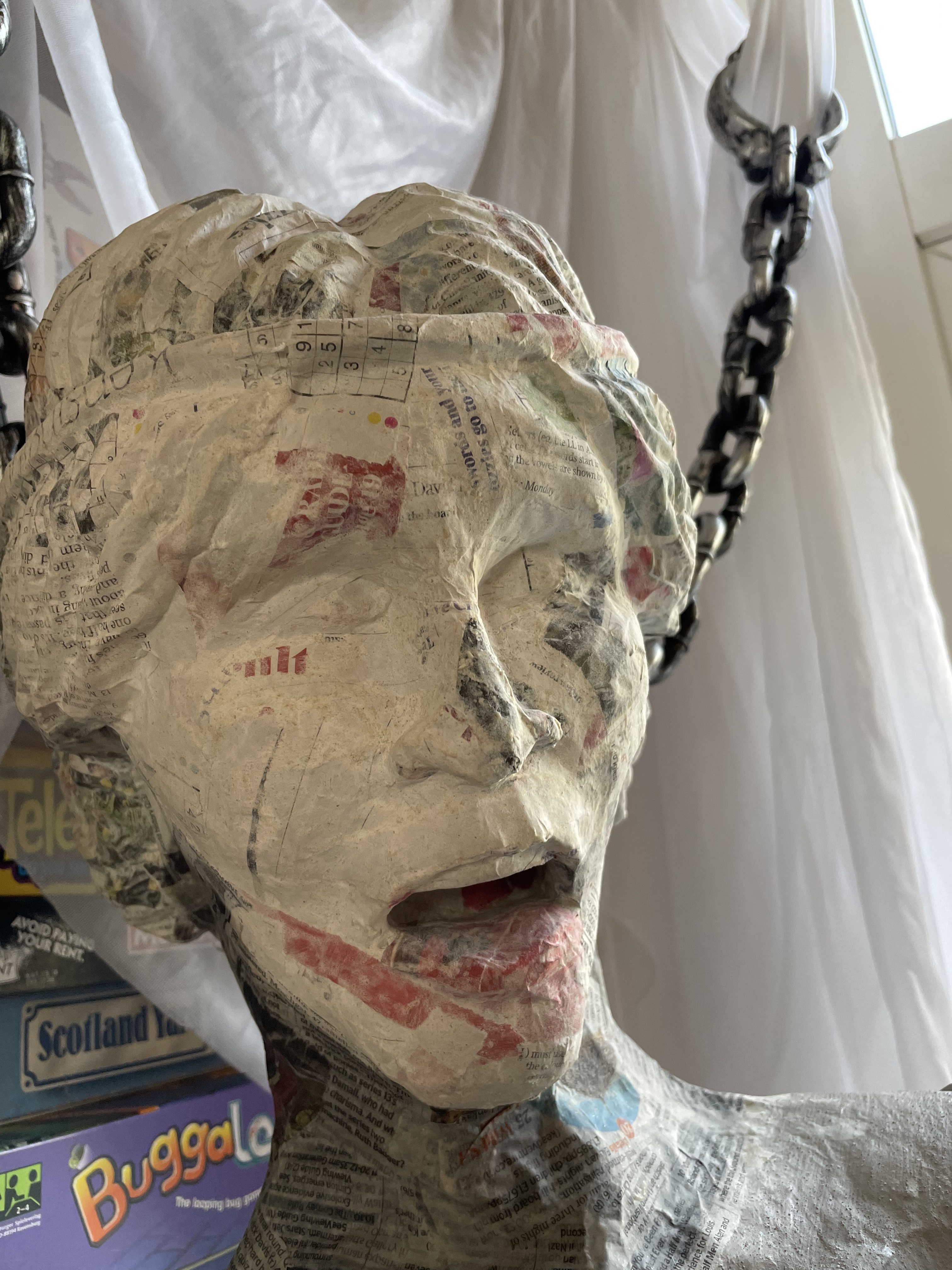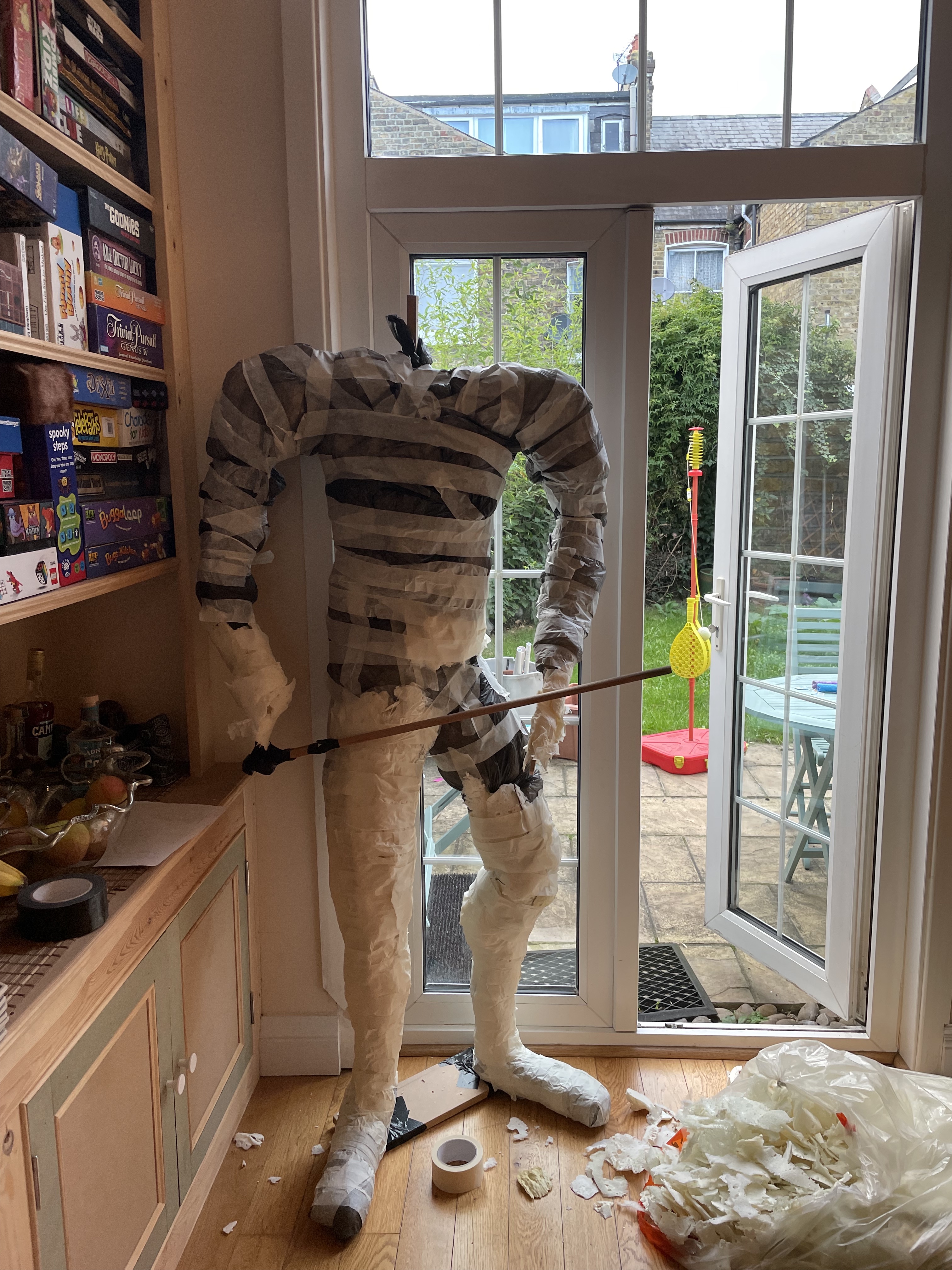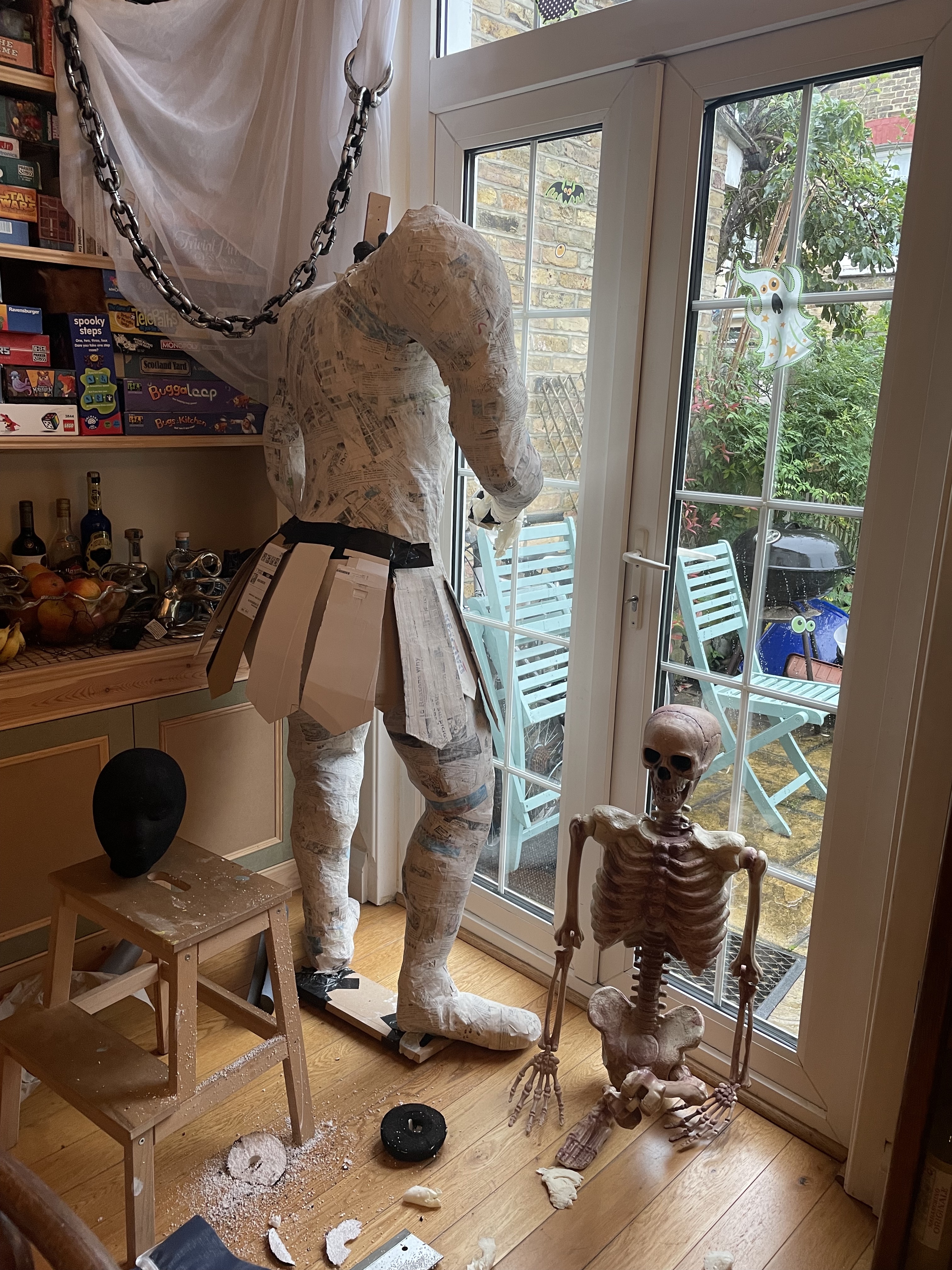 Halloween 2021 was Greek Mythology themed and included Cerberus’ three-headed doghouse, Arachne’s weaving workshop, Cy Clops’ Monocles shop and a couple unfortunate adventurers who crossed Medusa. I created a guide to the statues on Instructables. They’re made of scrap wood and PVC frames, cardboard, foam and papier mache.