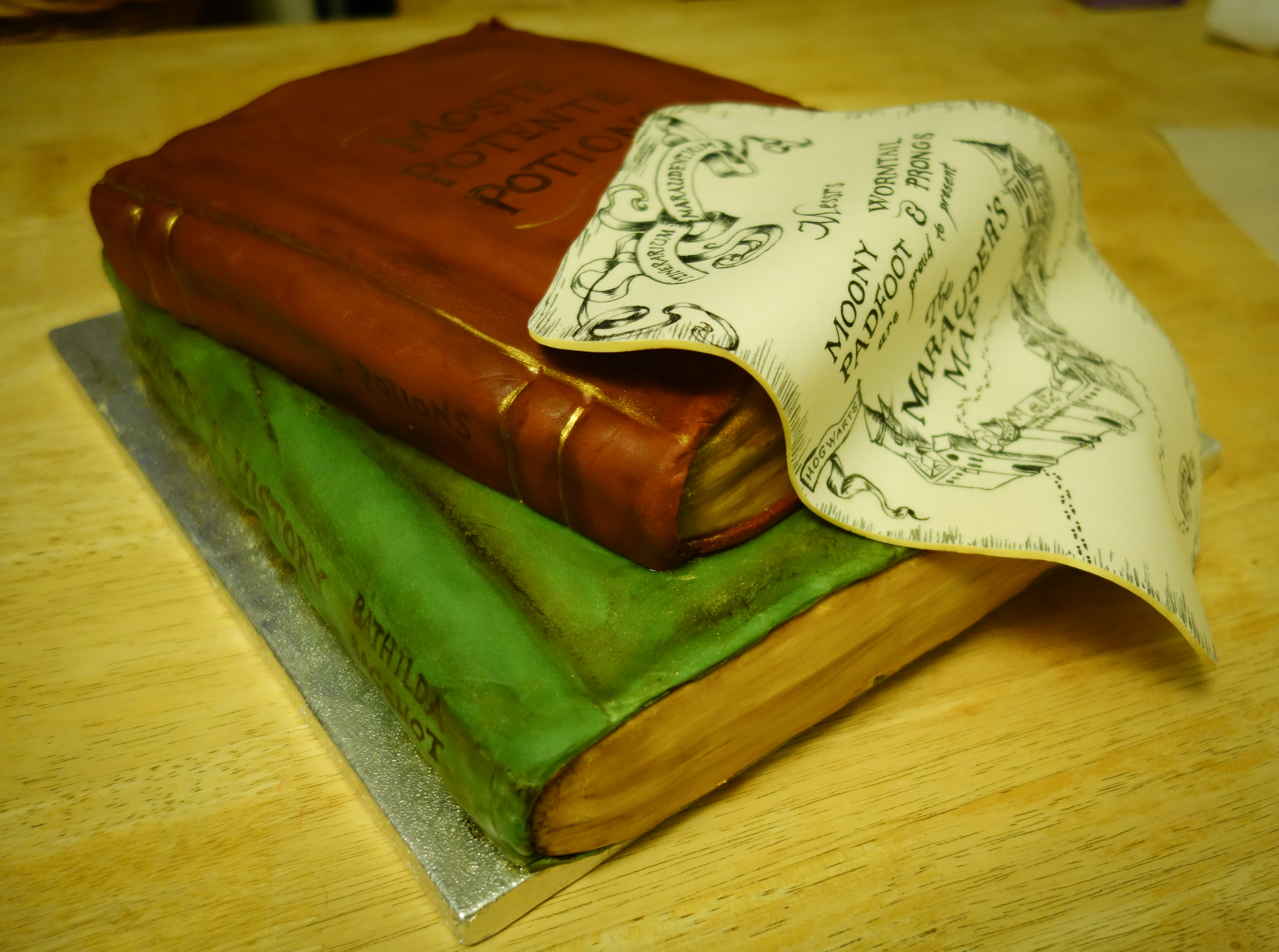 I’ve been slack about updating my blog, but I’m still working on various book projects. In fact, since my last update I’ve started a new middle-grade novel (about 20 pages done so far) and a new picture book (plotted, half-written, first few pages of storyboard sketched out). I posted my embarrassing old NaNoWriMo romance novel on Wattpad under a fake name. I’ve written a few more chapters of a mystery novel. I’ve finished a few more illustrations for Stealing the Show. And I baked a Harry Potter birthday cake that looked like spellbooks. (That counts, right?)