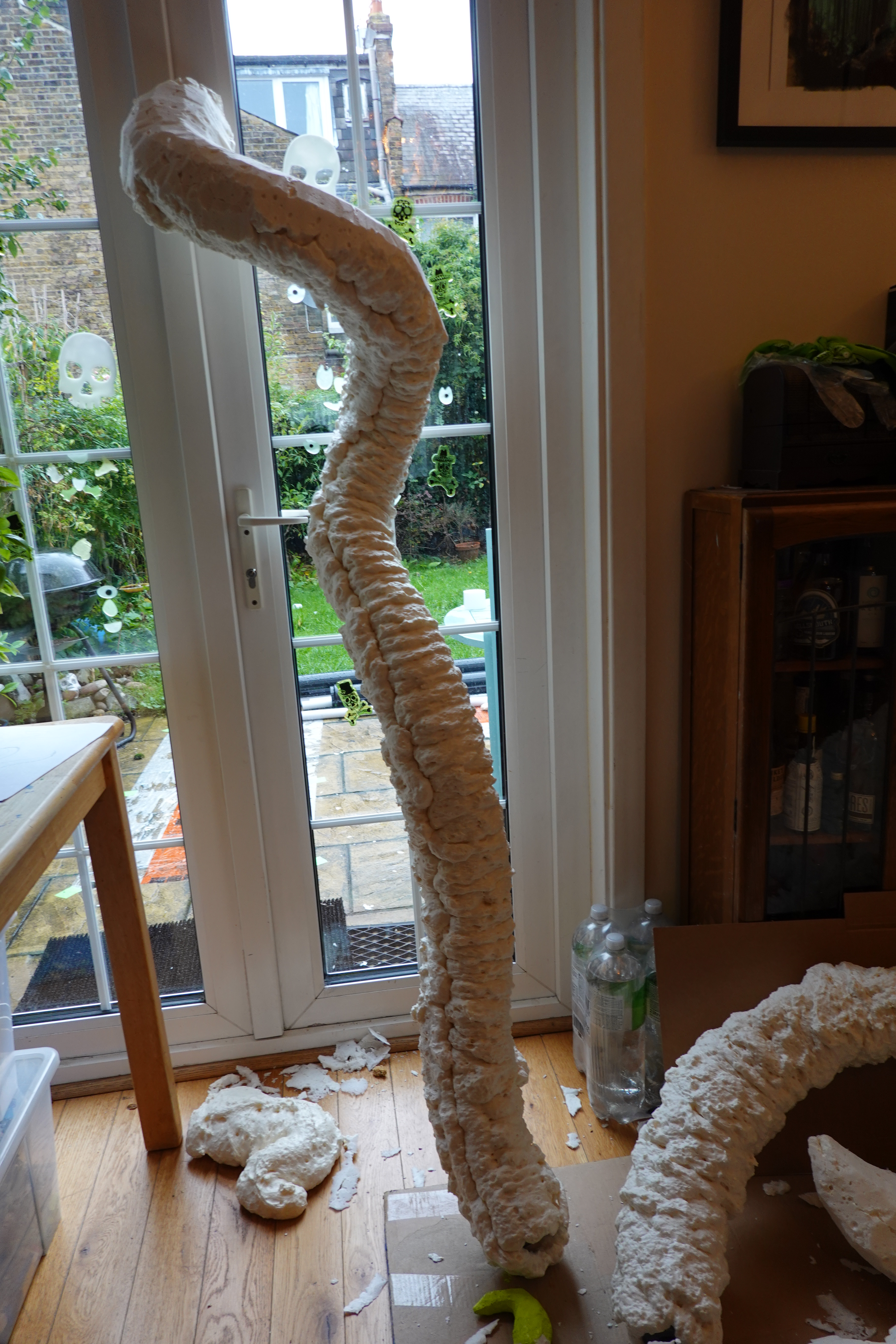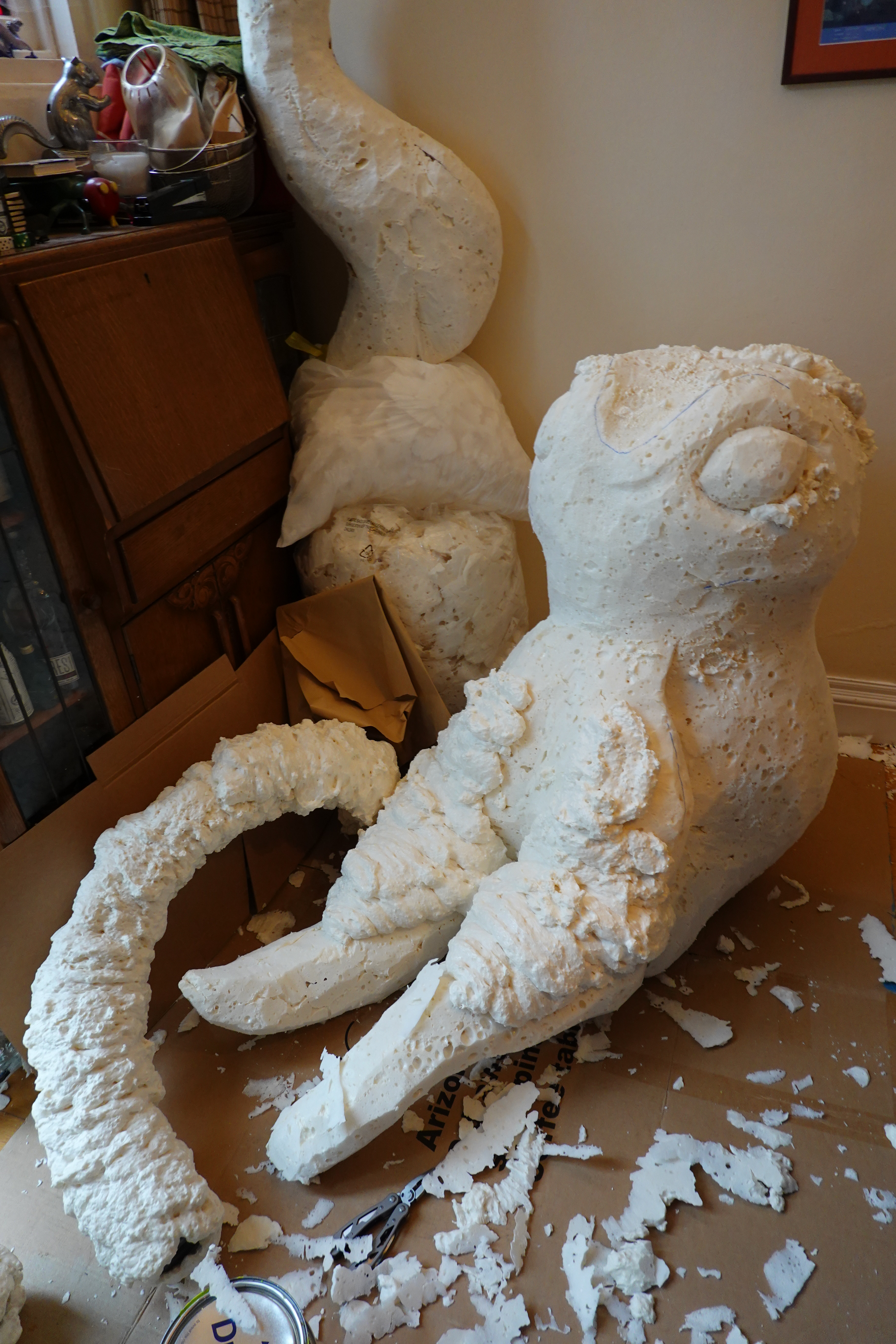 I created a step-by-step guide to building the Kraken (her name is Marge!) on Instructables. She’s made of spray insulation foam carved and covered in papier mache.